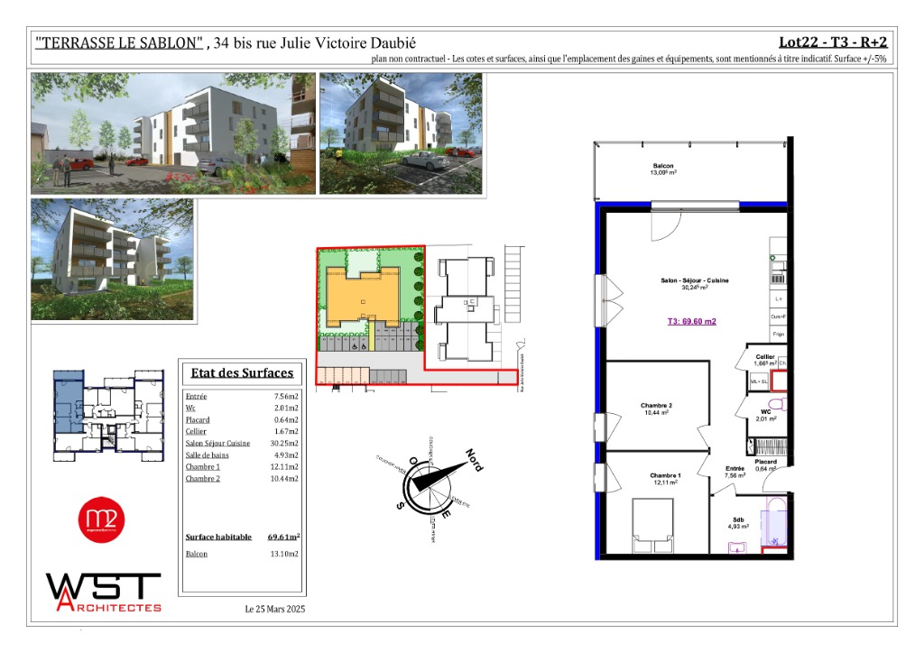 Dotés d'une architecture aux lignes contemporaines, 19 logements se répartissent sur l'ensemble de la Résidence proposant des volumes variés et personnalisables allant du T2 au T3, tous pourvus de balcons ou terrasses.