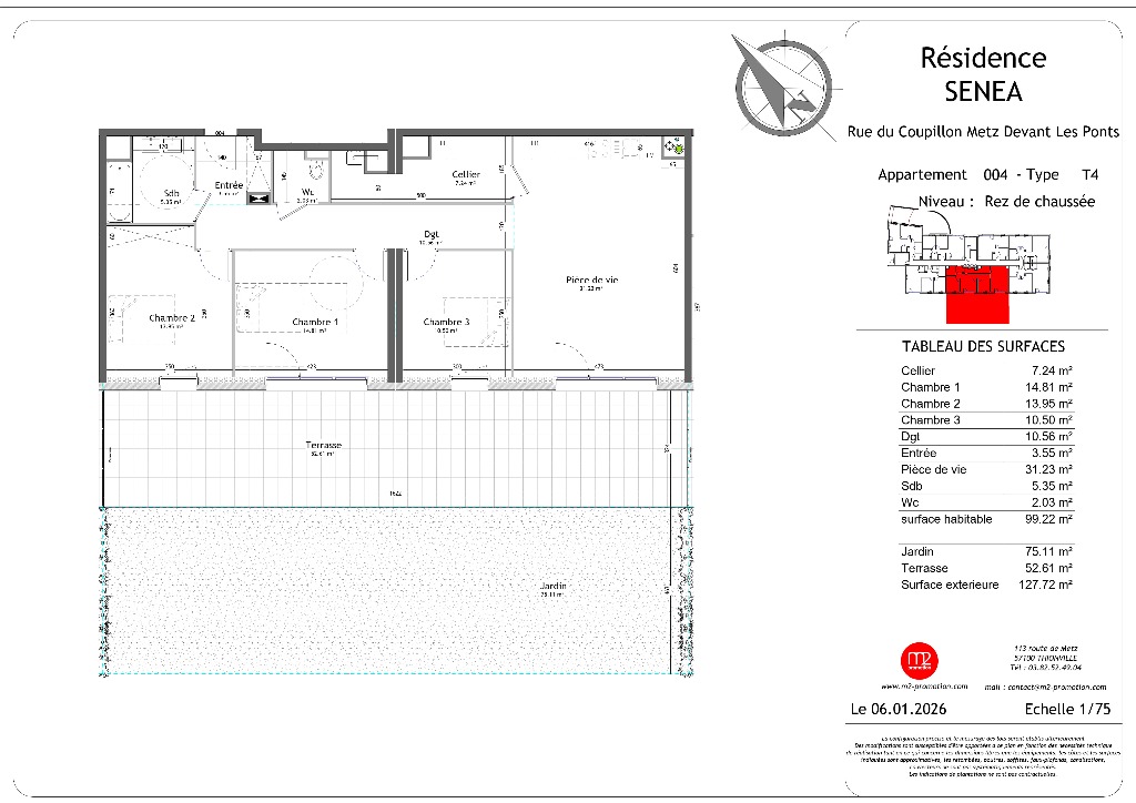 Découvrez une nouvelle adresse signée M2 PROMOTION, un environnement calme, verdoyant et privilégié vous attend au coeur de METZ Devant Les Ponts. La commune offre toutes les commodités necessaires au quotidien, écoles,  collége, commerces, médecin, pharmacie, banque... Vos transports et déplacements seront également facilités avec un accès immédiat à l’autoroute A31 qui vous permettra de rejoindre le Luxembourg en 45 mn seulement. Cette résidence à taille humaine et à l’architecture contemporaine est l'adresse idéale pour en faire sa résidence principale ou investir, 18 logements aux typologies variés et modulables se répartissent sur l'ensemble de la résidence allant du T2 au T4, adaptés à chaque projet de vie. Chaque logement dispose d’un espace extérieur, quelques-uns profitent de très grandes terrasses, un large choix de prestations permet à chaque acquéreur de composer un intérieur qui lui ressemble.