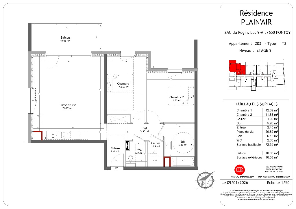 Découvrez une nouvelle adresse signée M2 PROMOTION : un environnement calme, verdoyant et privilégié vous attend au coeur de Fontoy. Vous profiterez de la proximité immédiate des commerces et services du quotidien, accessibles à pied. Vos transports et déplacements seront également facilités grâce à un accès direct à l’autoroute A30, vous permettant de rejoindre le Luxembourg en 20 mn seulement. Cette résidence à taille humaine, à l’architecture contemporaine, contitue l'adresse idéale pour y établir votre résidence principale ou réaliser un investissement. Elle se compose de 24 logements aux typologies variées et modulables, du T2 au T3, pensés pour s'adapter à chaque projet de vie. Chaque logement dispose d’un espace extérieur; certains bénéficient de très grandes terrasses.Un large choix de prestations permet à chaque acquéreur de composer un intérieur qui lui ressemble.