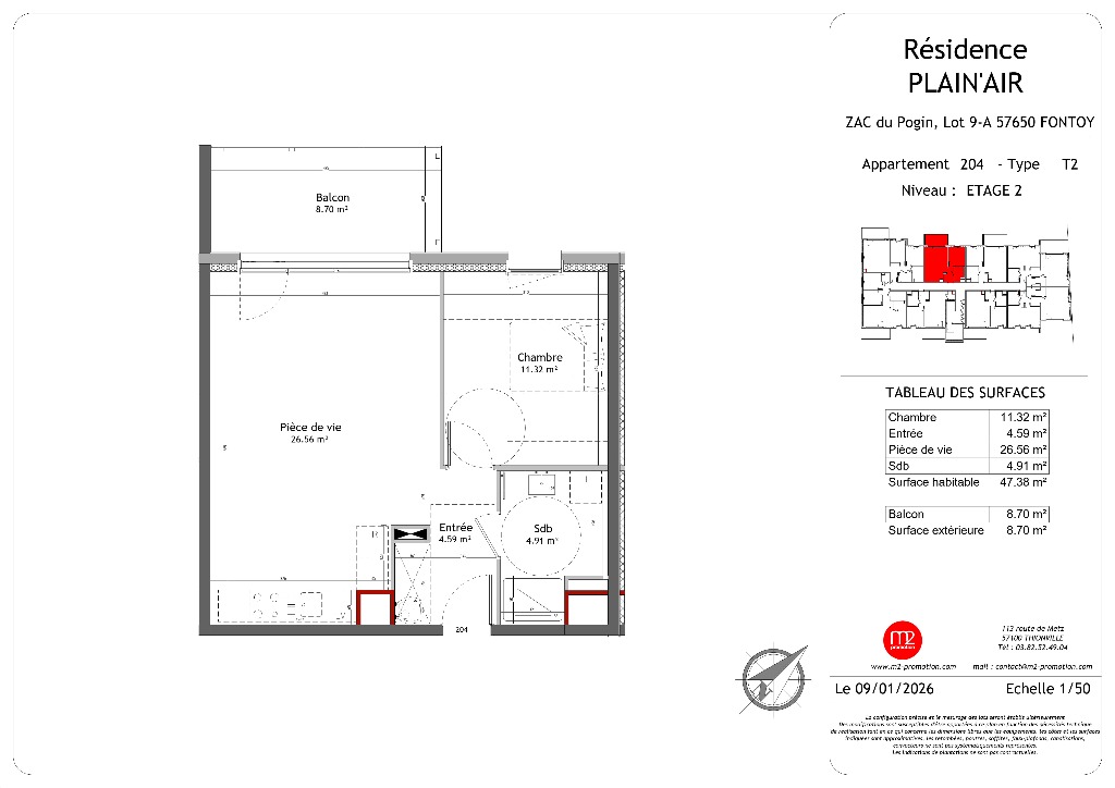 Découvrez une nouvelle adresse signée M2 PROMOTION : un environnement calme, verdoyant et privilégié vous attend au coeur de Fontoy. Vous profiterez de la proximité immédiate des commerces et services du quotidien, accessibles à pied. Vos transports et déplacements seront également facilités grâce à un accès direct à l’autoroute A30, vous permettant de rejoindre le Luxembourg en 20 mn seulement. Cette résidence à taille humaine, à l’architecture contemporaine, contitue l'adresse idéale pour y établir votre résidence principale ou réaliser un investissement. Elle se compose de 24 logements aux typologies variées et modulables, du T2 au T3, pensés pour s'adapter à chaque projet de vie. Chaque logement dispose d’un espace extérieur; certains bénéficient de très grandes terrasses.Un large choix de prestations permet à chaque acquéreur de composer un intérieur qui lui ressemble.